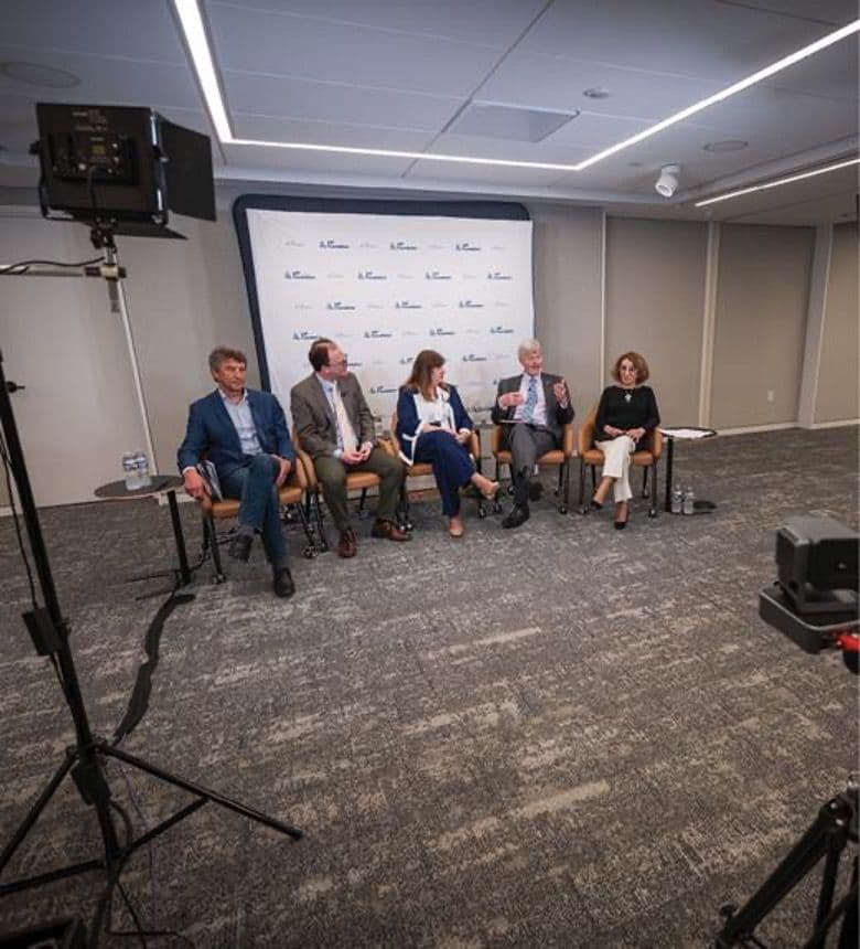 從左至右:Evgeni Gousev、Jesse Thaler、Valerie Browning、Walter Copan 與 主持人France Córdova。