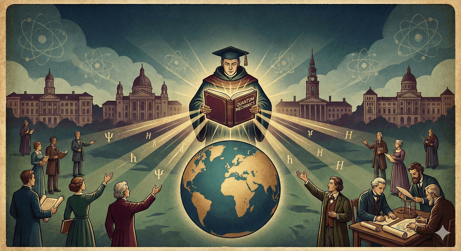 那麼量子力學是怎麼在全世界各個角落發芽進而開花結實的呢? 這個過程其實與當年佛教東傳,或是基督教的使徒們向萬邦傳送福音的過程,還真是有許多類似的地方。我們會發現,如同當年的高僧或使徒一般,量子力學一開始的傳播也非常仰賴極少數的關鍵人物,這些人帶著極高的熱忱與極優異的才能,逐漸將量子力學的種子撒在年輕一代學者的腦海中。